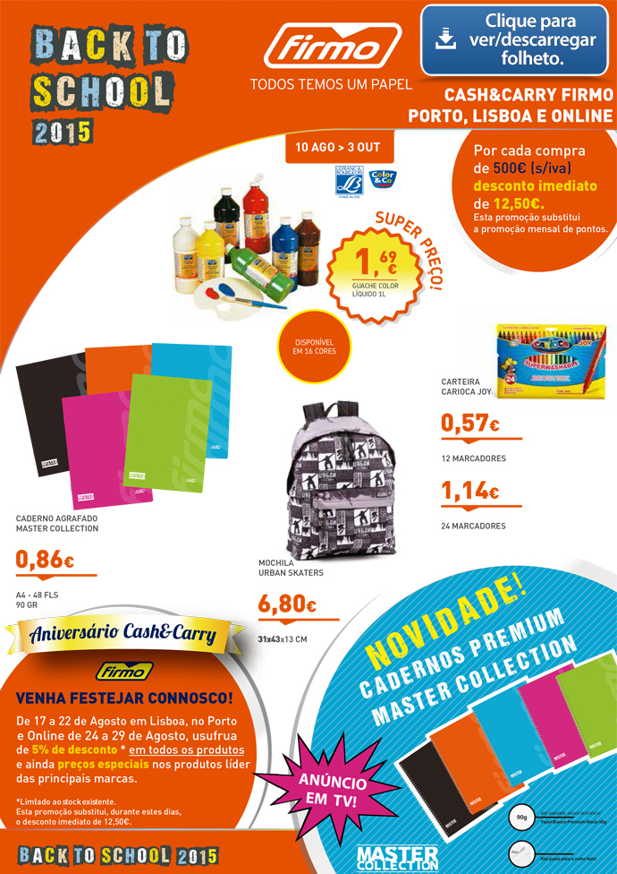 Assunto: Folheto Regresso às Aulas 2015 - Agosto/Setembro - Cash&Carry FIRMO