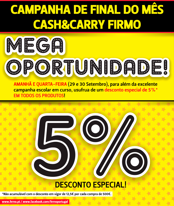 MEGA OPORTUNIDADE! 5% DESCONTO - Amanhã e 30 de Setembro no Cash&Carry FIRMO!