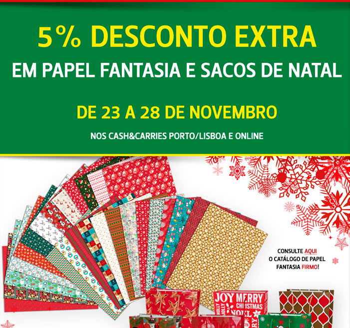 5% DESCONTO EXTRA | PAPEL FANTASIA E SACOS DE NATAL | 23 a 28 de Novembro | FIRMO
