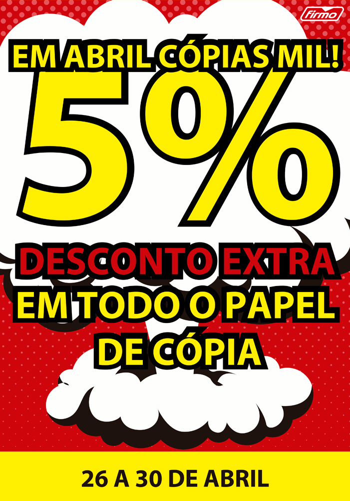 EM ABRIL, CÓPIAS MIL! 5% DESCONTO EXTRA EM TODO O PAPEL DE CÓPIA | 26 A 30 DE ABRIL | CASH&CARRY FIRMO