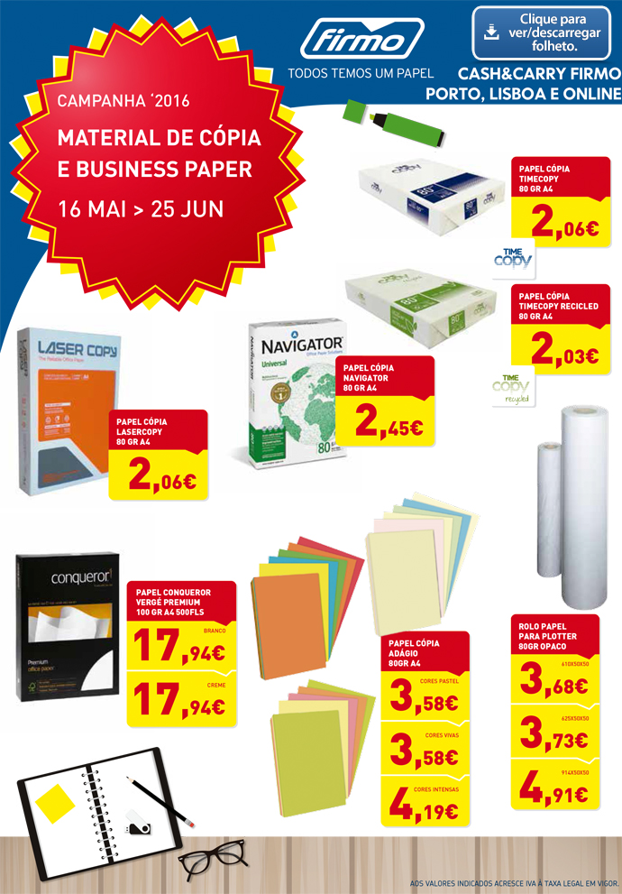 Assunto: Folheto de Material de Cópia e Business Paper - Maio 2016 - Cash&Carry FIRMO