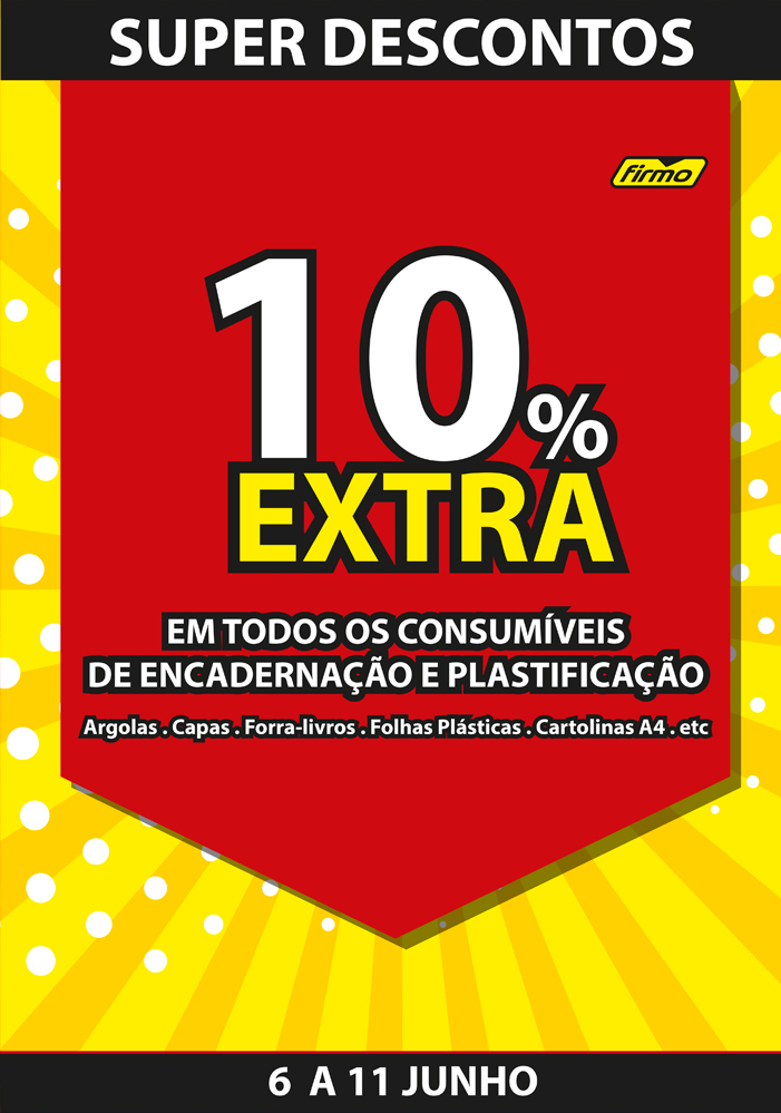 DESCONTO ÚLTIMA HORA | 10% DESCONTO EXTRA EM TODOS OS CONSUMÍVEIS DE ENCADERNAÇÃO, PLASTIFICAÇÃO E VERBATIM | 6 A 11 DE JUNHO | CASH&CARRY FIRMO