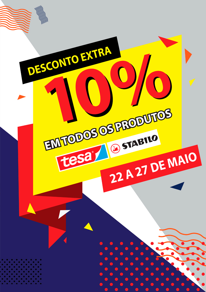 SUPER DESCONTOS | 10% DESCONTO EXTRA EM TODOS OS PRODUTOS TESA E STABILO! | 22 A 27 DE MAIO | CASH&CARRY FIRMO