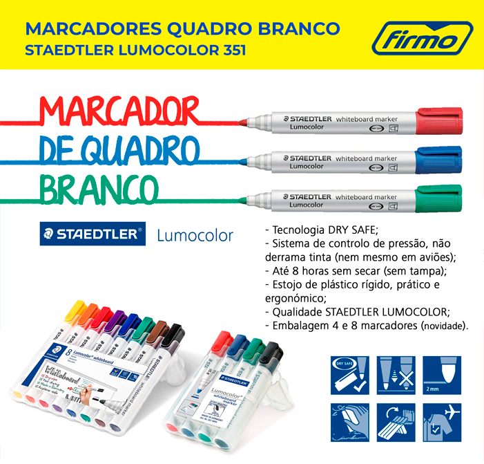 STAEDTLER LUMOCOLOR 351 | MARCADORES QUADRO BRANCO | FIRMO