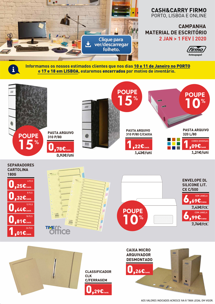 Assunto: ÚLTIMA SEMANA | Folheto MATERIAL DE ESCRITÓRIO | Janeiro 2020 - Cash&Carry FIRMO | Compre já!