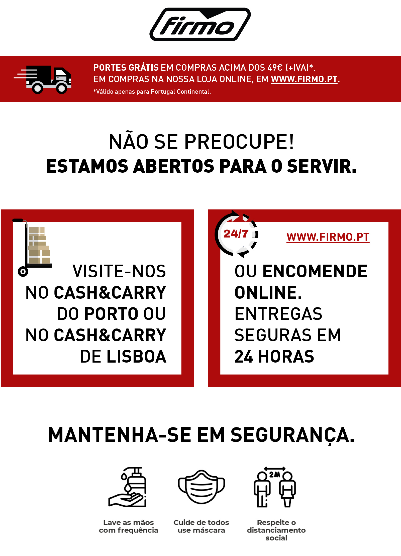 Não se preocupe! ESTAMOS ABERTOS para o servir. - Cash&Carry FIRMO