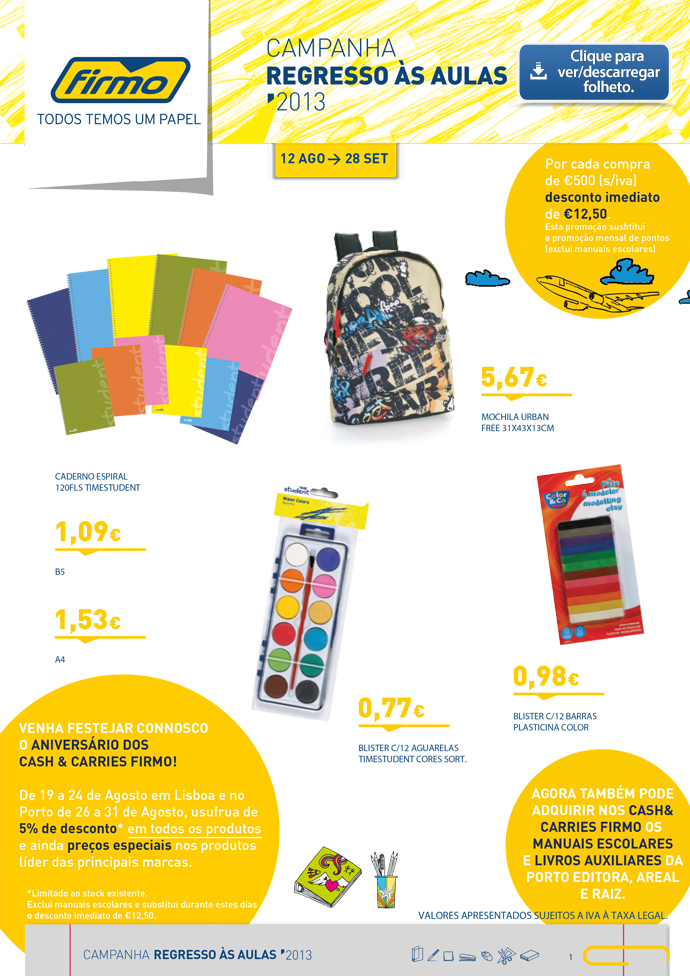 Assunto: Folheto Regresso às Aulas - Agosto 2013 - Cash&Carry FIRMO