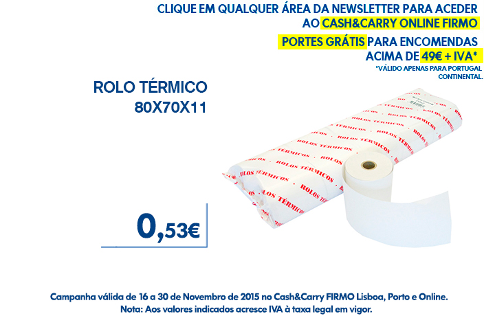 Campanha Quinzenal Cash&Carry Online FIRMO | Rolo Térmico 80x70x11