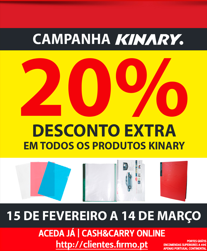 20% DESCONTO EXTRA EM TODA A GAMA KINARY | 15 DE FEVEREIRO A 14 DE MARÇO | CASH&CARRY ONLINE FIRMO