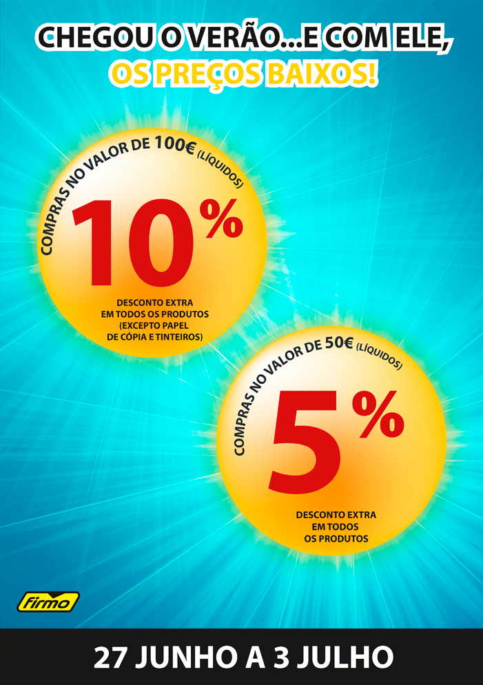 CHEGOU O VERÃO E COM ELE OS PREÇOS BAIXOS! | 5 E 10% DESCONTO EXTRA EM TODOS OS PRODUTOS! | 27 DE JUNHO A 3 DE JULHO | CASH&CARRY ONLINE FIRMO