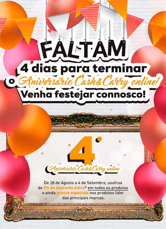 Faltam 4 dias para terminar o Aniversário do Cash&Carry Online | 5% de Desconto! Aproveite já! - FIRMO