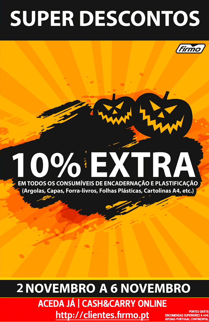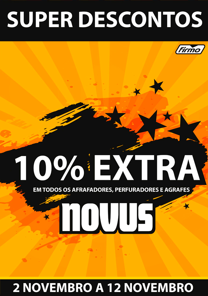 SUPER DESCONTOS! | 10% DESCONTO EXTRA EM TODOS OS PRODUTOS NOVUS, CONSUMÍVEIS DE ENCADERNAÇÃO E PLASTIFICAÇÃO! | 2 A 6 DE NOVEMBRO | CASH&CARRY ONLINE FIRMO