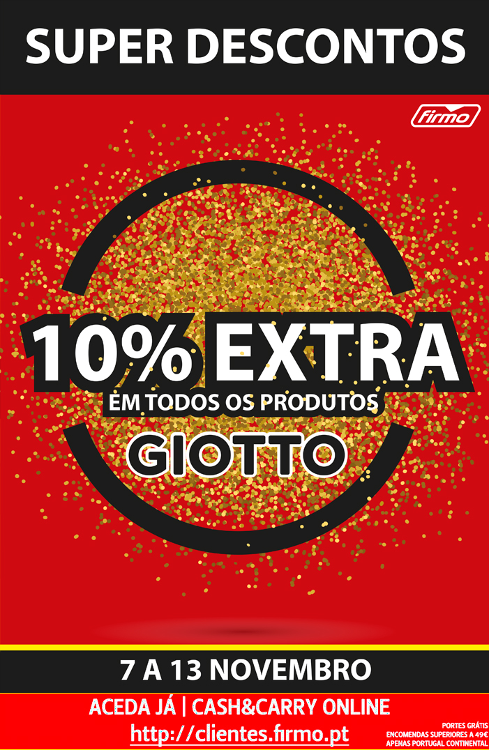 SUPER DESCONTOS! | 10% DESCONTO EXTRA EM TODOS OS PRODUTOS GIOTTO! | 7 A 13 DE NOVEMBRO | CASH&CARRY ONLINE FIRMO