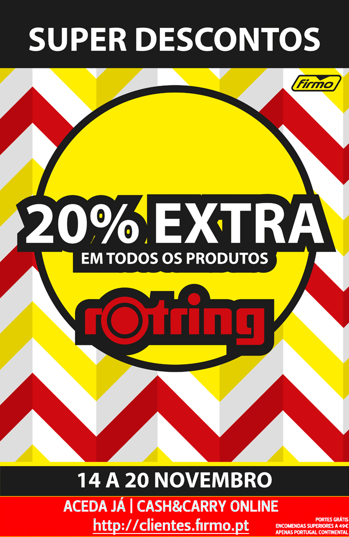 SUPER DESCONTOS! | 20% DESCONTO EXTRA EM TODOS OS PRODUTOS ROTRING! | 14 A 20 DE NOVEMBRO | CASH&CARRY ONLINE FIRMO