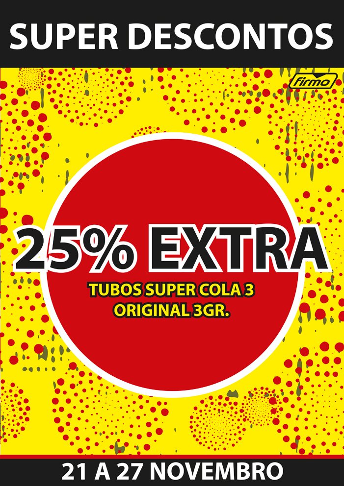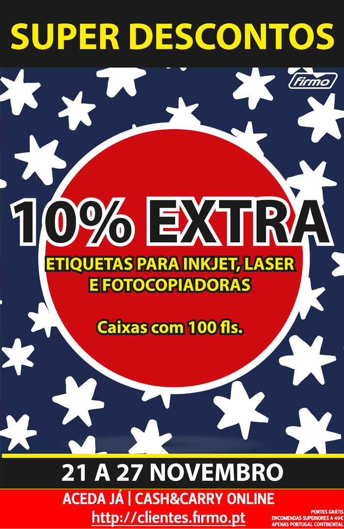 SUPER DESCONTOS! | 10% DESCONTO EXTRA EM ETIQUETAS PARA IMPRESSÃO E 25% EXTRA EM TUBO SUPER COLA 3 ORIGINAL 3GR! | 21 A 27 DE NOVEMBRO | CASH&CARRY ONLINE FIRMO
