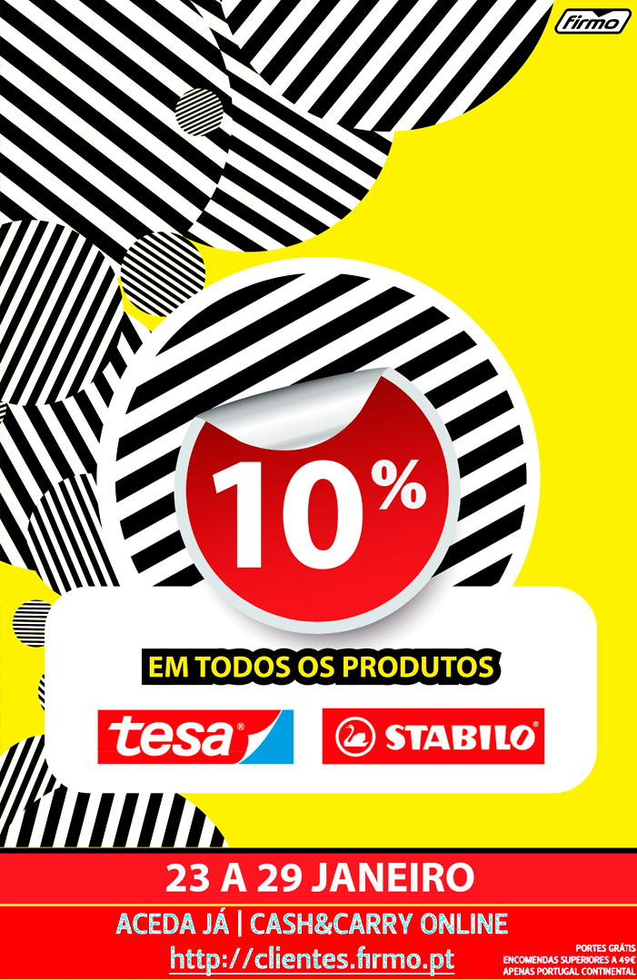 SUPER DESCONTOS! | 10% DESCONTO EXTRA EM TODOS OS PRODUTOS TESA E STABILO! | 23 A 29 DE JANEIRO | CASH&CARRY ONLINE FIRMO