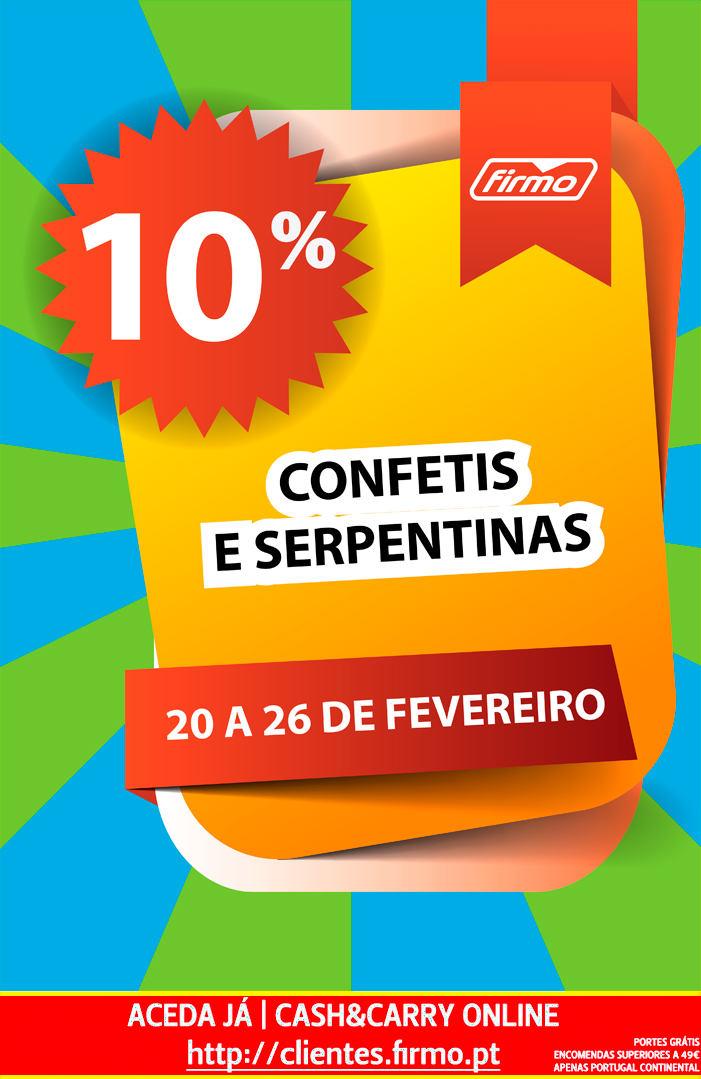SUPER DESCONTOS! | 10% DESCONTO EXTRA EM CONFETIS E SERPENTINAS! | 20 A 26 DE FEVEREIRO | CASH&CARRY ONLINE FIRMO