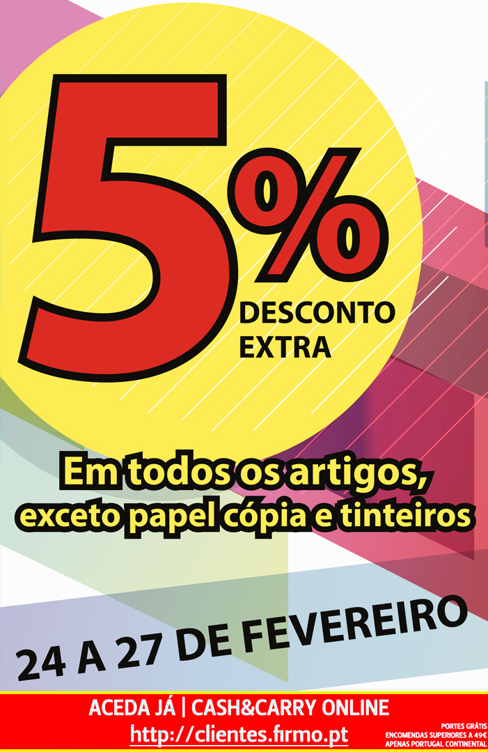 MEGA CAMPANHA | DE 24 A 27 DE FEVEREIRO | 5% DESCONTO EXTRA EM TODOS OS ARTIGOS! | CASH&CARRY ONLINE FIRMO
