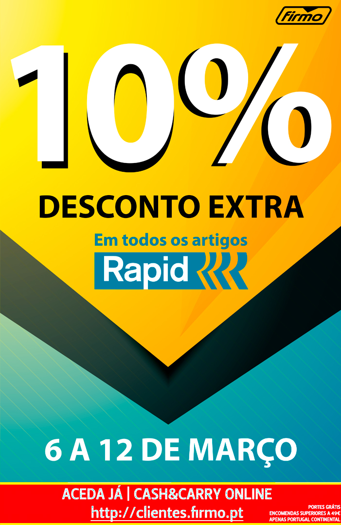 SUPER DESCONTOS! | 10% DESCONTO EXTRA EM TODOS OS ARTIGOS RAPID! | 6 A 12 DE MARÇO | CASH&CARRY ONLINE FIRMO