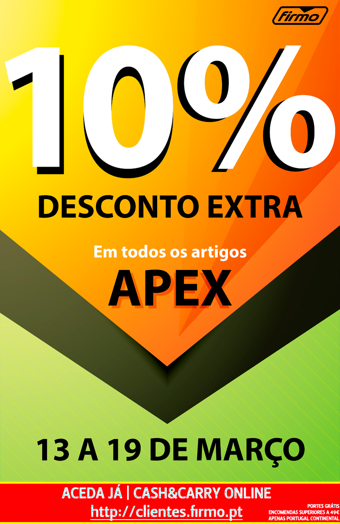 SUPER DESCONTOS! | 10% DESCONTO EXTRA EM TODOS OS ARTIGOS APEX! | 13 A 19 DE MARÇO | CASH&CARRY ONLINE FIRMO