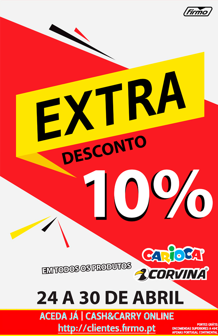 SUPER DESCONTOS | 10% DESCONTO EXTRA EM TODOS OS PRODUTOS CARIOCA E CORVINA! | 24 A 30 DE ABRIL | CASH&CARRY ONLINE FIRMO