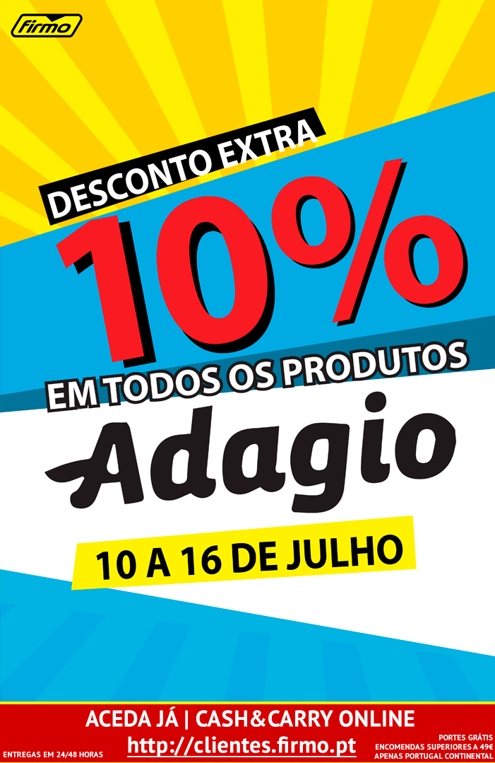 SUPER DESCONTOS | 10% DESCONTO EXTRA EM TODOS OS PRODUTOS ADAGIO! | 10 A 16 DE JULHO | CASH&CARRY ONLINE FIRMO