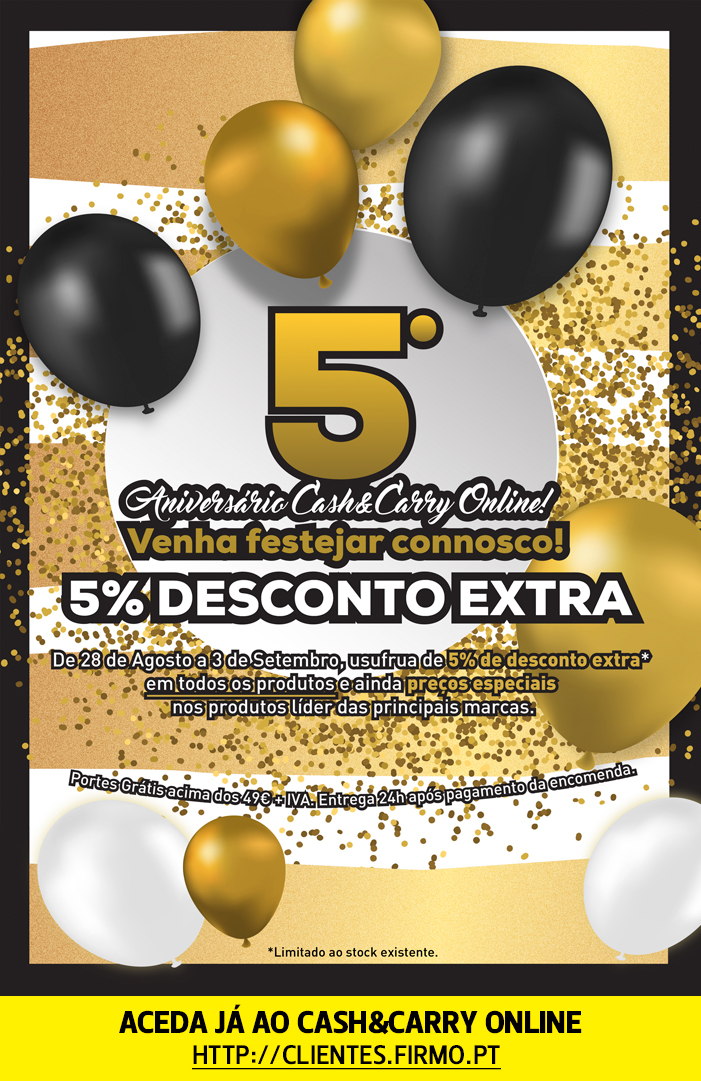 5º Aniversário Cash&Carry Online – Venha Festejar Connosco! – 5% Desconto – Aceda já! | FIRMO