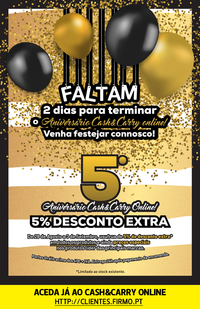 Faltam 2 dias para terminar o Aniversário do Cash&Carry Online | 5% de Desconto | Aceda já! - FIRMO