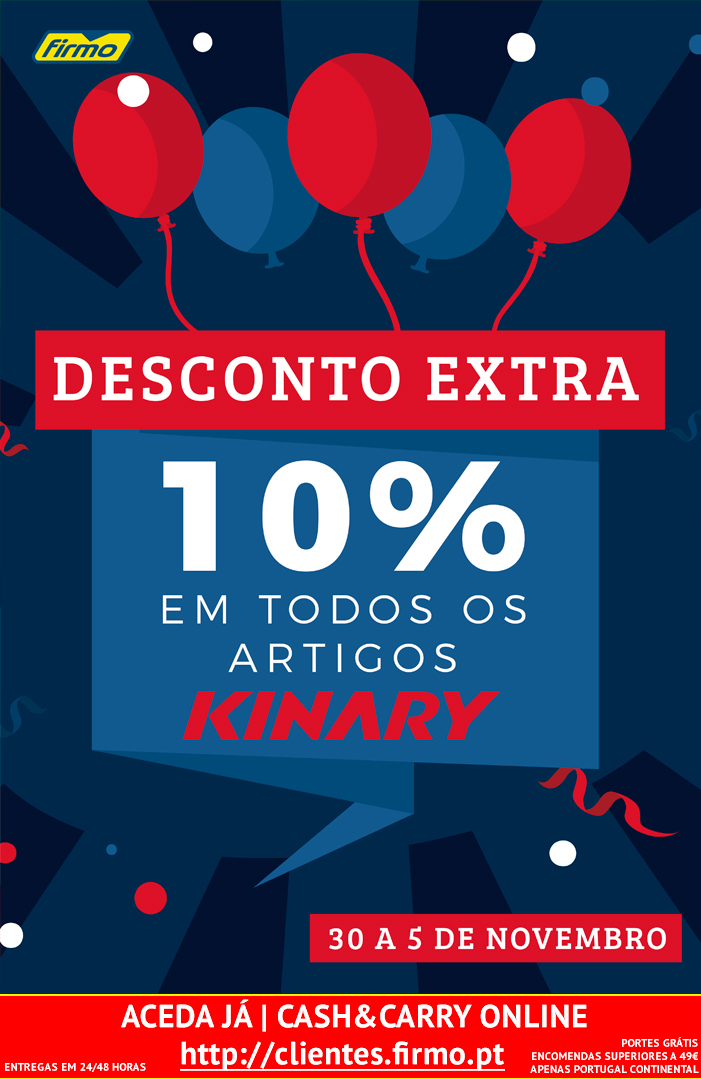 10% DESCONTO EXTRA EM TODOS OS ARTIGOS KINARY! | 30 A 5 DE NOVEMBRO | CASH&CARRY ONLINE FIRMO