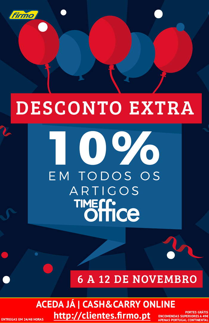 10% DESCONTO EXTRA EM TODOS OS ARTIGOS TIMEOFFICE! | 6 A 12 DE NOVEMBRO | CASH&CARRY ONLINE FIRMO