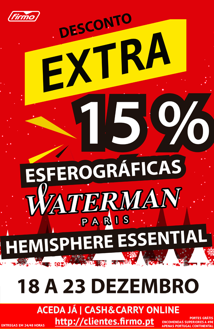 15% DESCONTO EXTRA EM ESFEROGRÁFICAS WATERMAN HEMISPHERE ESSENTIAL! | 18 A 23 DE DEZEMBRO | CASH&CARRY ONLINE FIRMO