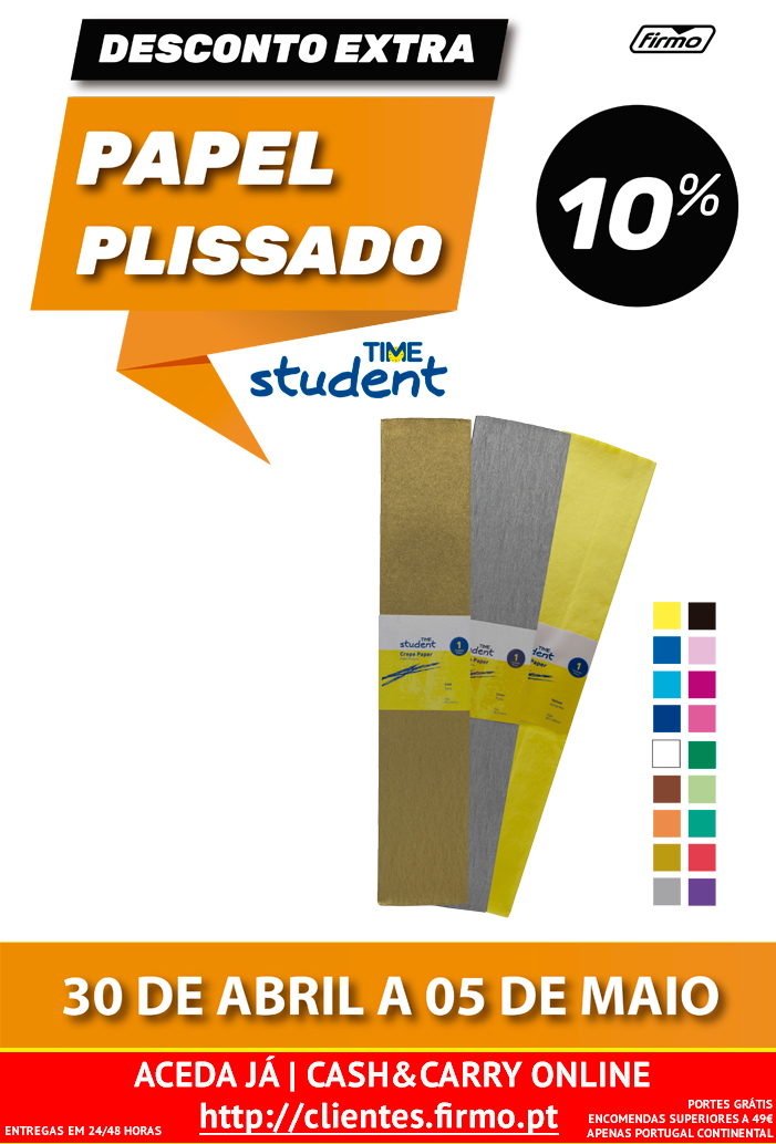 10% DESCONTO EXTRA EM PAPEL PLISSADO TIMESTUDENT! | 30 DE ABRIL A 05 DE MAIO | CASH&CARRY ONLINE FIRMO