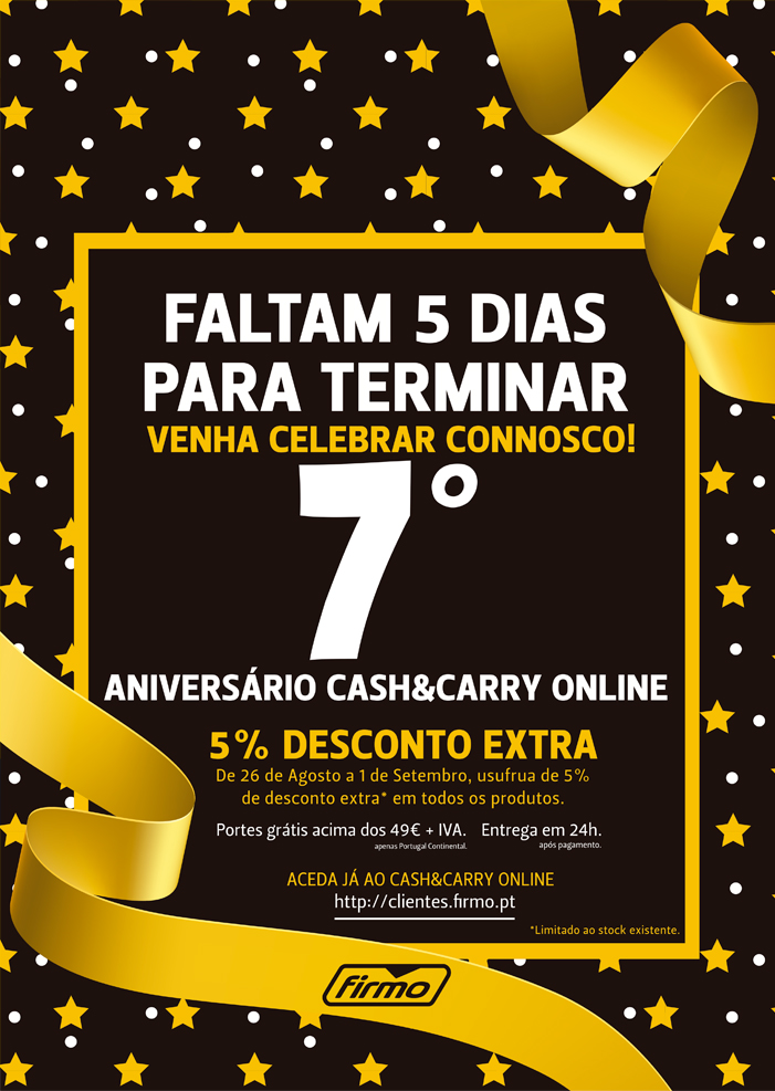 5% DESCONTO EXTRA – Faltam 5 dias para terminar o Aniversário do Cash&Carry Online – Compre já! | FIRMO
