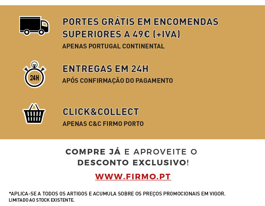 5% DESCONTO ADICIONAL EM TODAS AS ENCOMENDAS | Este ano celebramos a dobrar no C&C Online | Compre já em FIRMO.pt