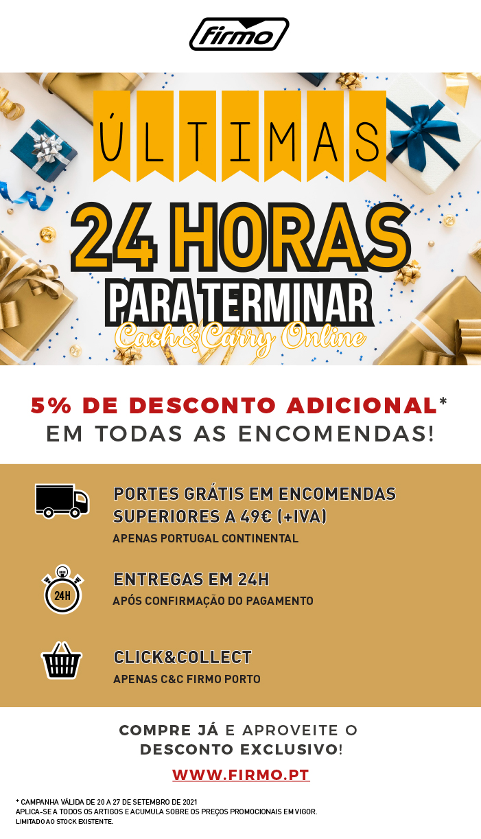 ÚLTIMAS 24H para aproveitar os 5% DESCONTO EM TODAS AS ENCOMENDAS | Compre já em FIRMO.pt