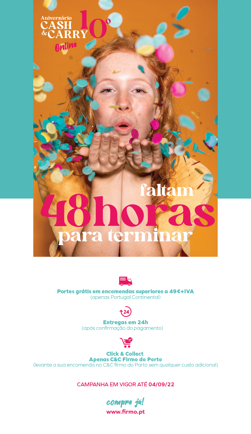 Últimas 48 HORAS para usufruir dos 5% DESCONTO EXTRA em TODAS as encomendas | 10º Aniversário Cash&Carry Online | Compre já em FIRMO.pt