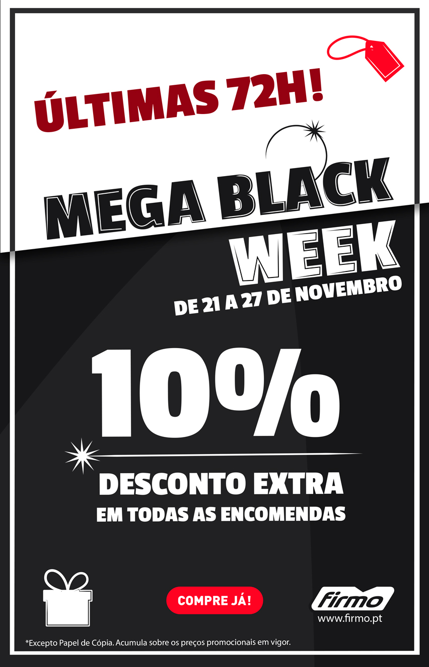 Últimas 72 Horas para usufruir dos 10% DESCONTO EXTRA em todas as encomendas | MEGA Black Week FIRMO | Compre Online em FIRMO.pt