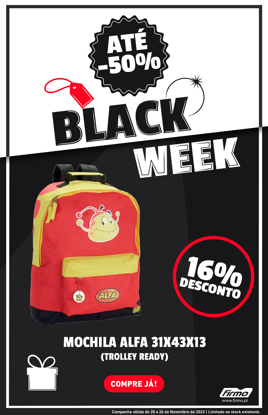 Black Week FIRMO | Aproveite já, os 16% de DESCONTO na Mochila Alfa 31x43x13 | Compre já em FIRMO.pt
