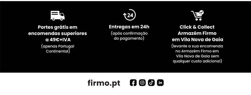 Oferta de portes válido para Portugal Continental, em encomendas de valor superior a 49€ + IVA. Para encomendas de valor inferior a 49€ + IVA o valor dos portes é 7€ + IVA. Para ilhas o valor da encomenda é sempre acrescido de portes, calculados e taxados após separação do material e em função do peso e volumes.