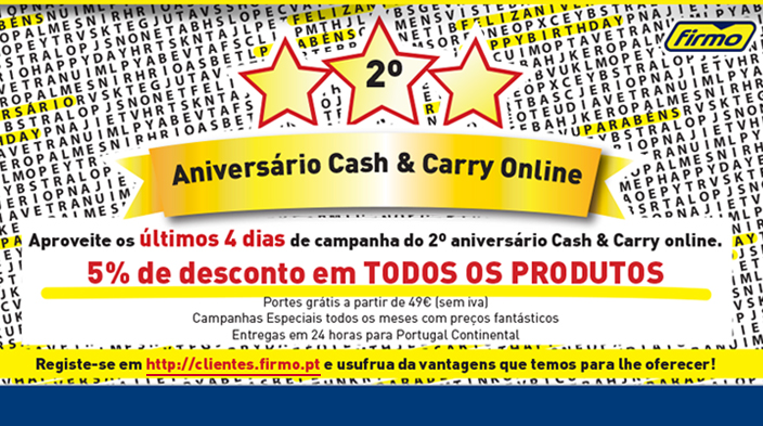 Últimos 4 dias | 5% de Desconto em todos os produtos | Cash&Carry Online FIRMO