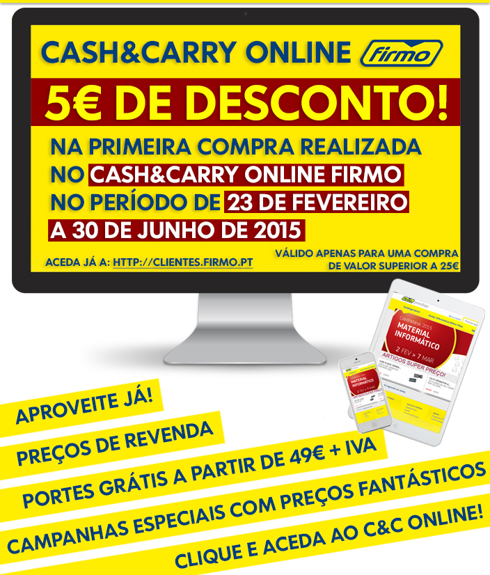 5€ de desconto na primeira compra entre 23 de Fevereiro a 30 Junho | Cash&CarryOnline FIRMO