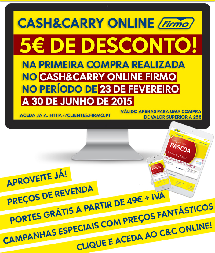 Não se esqueça... 5€ de DESCONTO na primeira compra no Cash&CarryOnline FIRMO! Aproveite já!