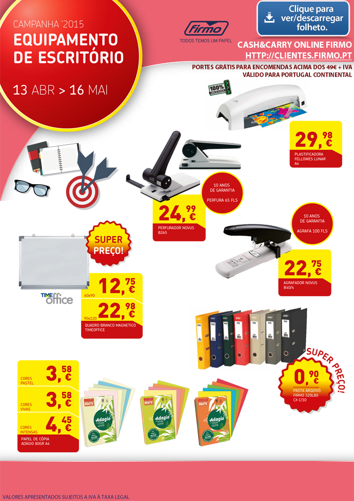 Assunto: Folheto Equipamento de Escritório - Abril 2015 - Cash&Carry Online FIRMO | 5€ de Desconto na 1ª compra!