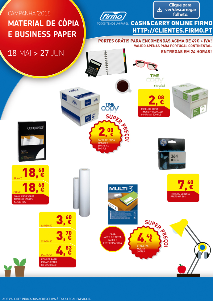 Assunto: Última semana do Folheto Material de Cópia e 5€ de Desconto na 1ª compra só até 30 Junho! - Cash&Carry Online FIRMO