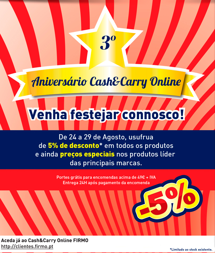 Não se esqueça, semana do 3º Aniversário Cash&Carry Online FIRMO – Festeje connosco!