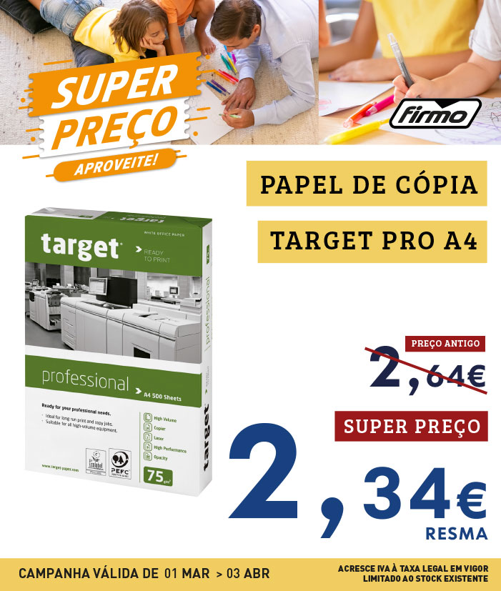 SUPER PREÇO | PAPEL CÓPIA TARGET PROFESSIONAL A4 | 2.34€/RESMA | CASH&CARRY ONLINE FIRMO | COMPRE JÁ!