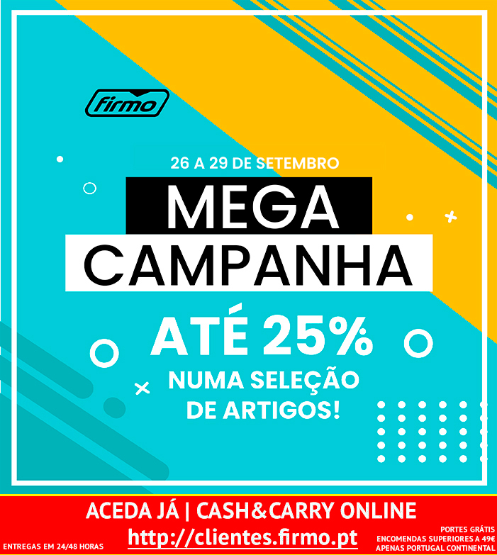 MEGA CAMPANHA | ATÉ 25% NUMA SELEÇÃO DE ARTIGOS | 26 A 29 SETEMBRO | CASH&CARRY ONLINE FIRMO | COMPRE JÁ!