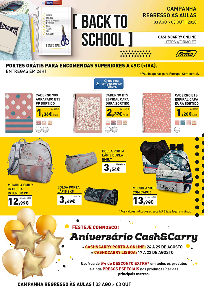 Assunto: Folheto BACK TO SCHOOL 2020 | Cash&Carry Online FIRMO | Compre já!