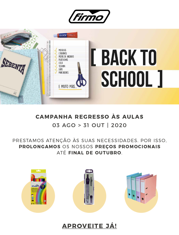 Prologamos o Folheto BACK TO SCHOOL 2020 até 31 de Outubro | Cash&Carry Online FIRMO | Compre já!