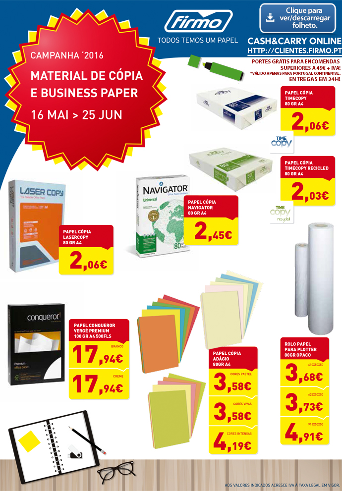 Assunto: Folheto de Material de Cópia e Business Paper - Maio 2016 - Cash&Carry Online FIRMO